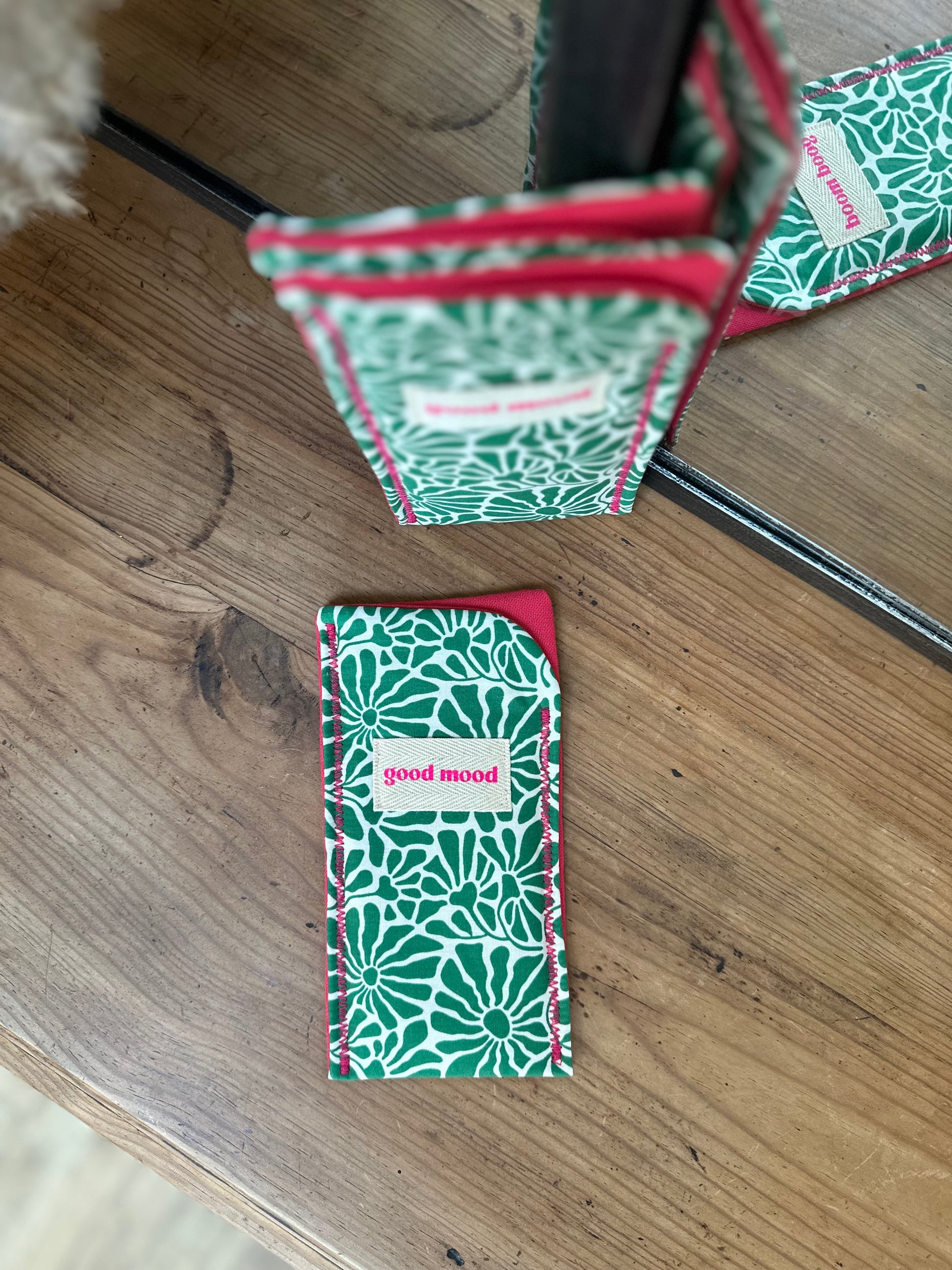 • Design : Tissu à motifs colorés, avec étiquette “Good Mood” cousue (possibilité de personnalisation avec le message de votre choix !)