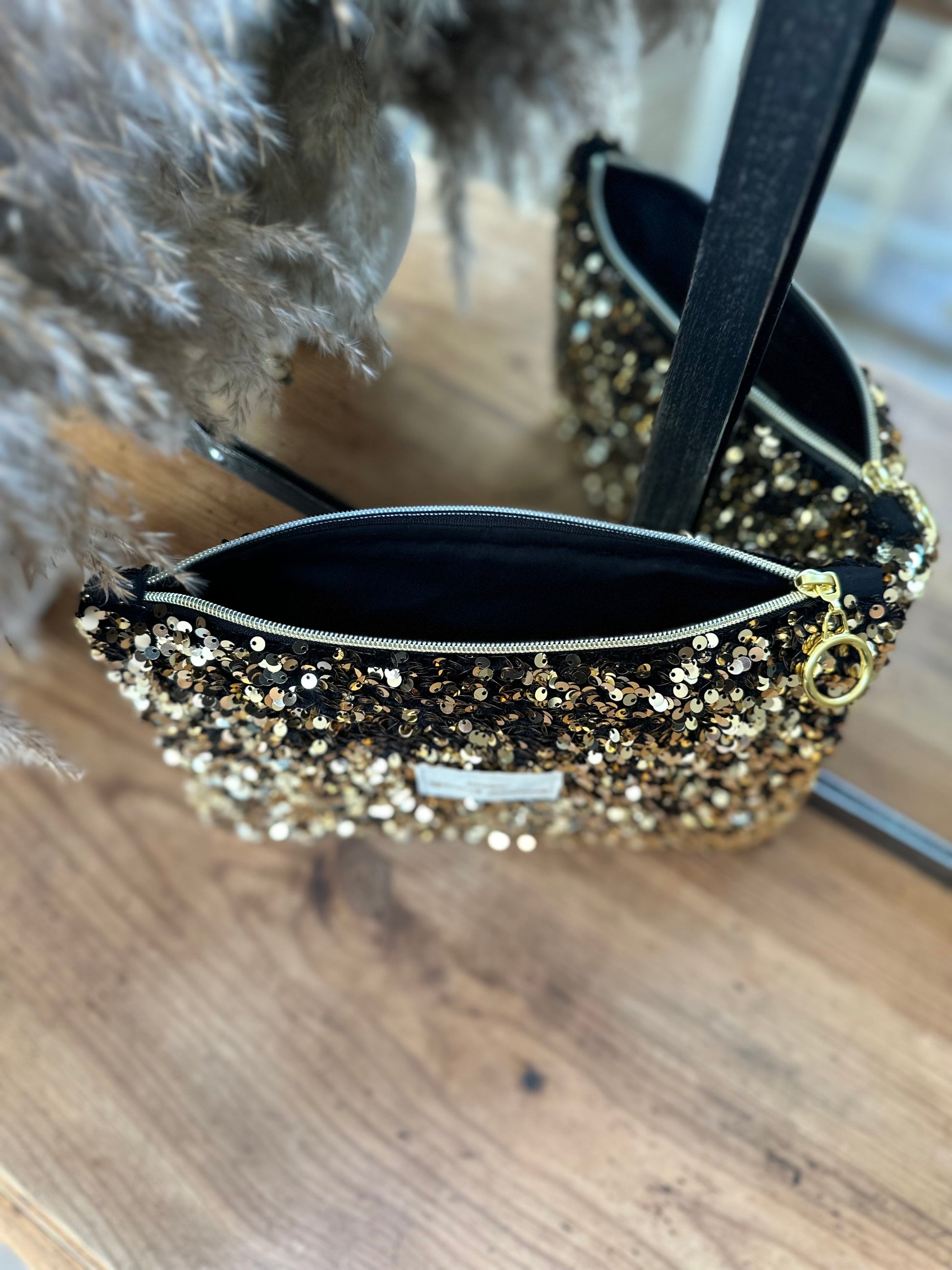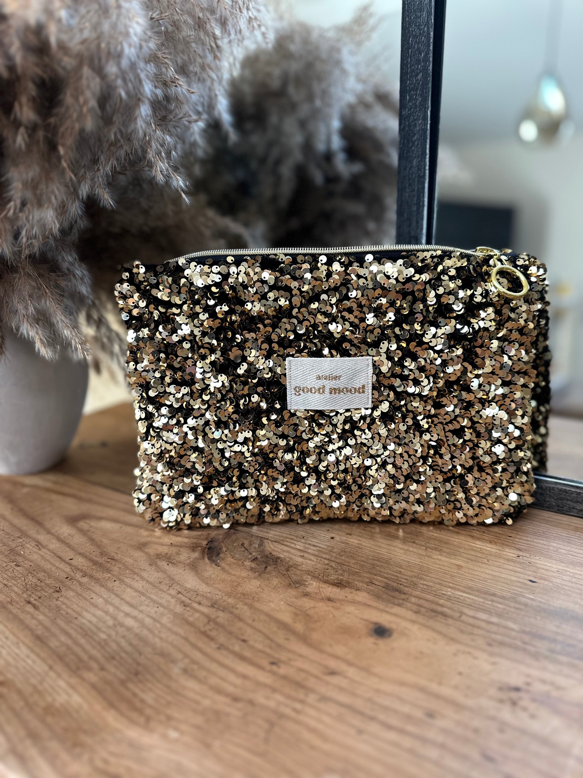 Faisant partie de la collection Glow Therapy, cette pochette en sequins dorés apporte une touche d’éclat à ton quotidien.