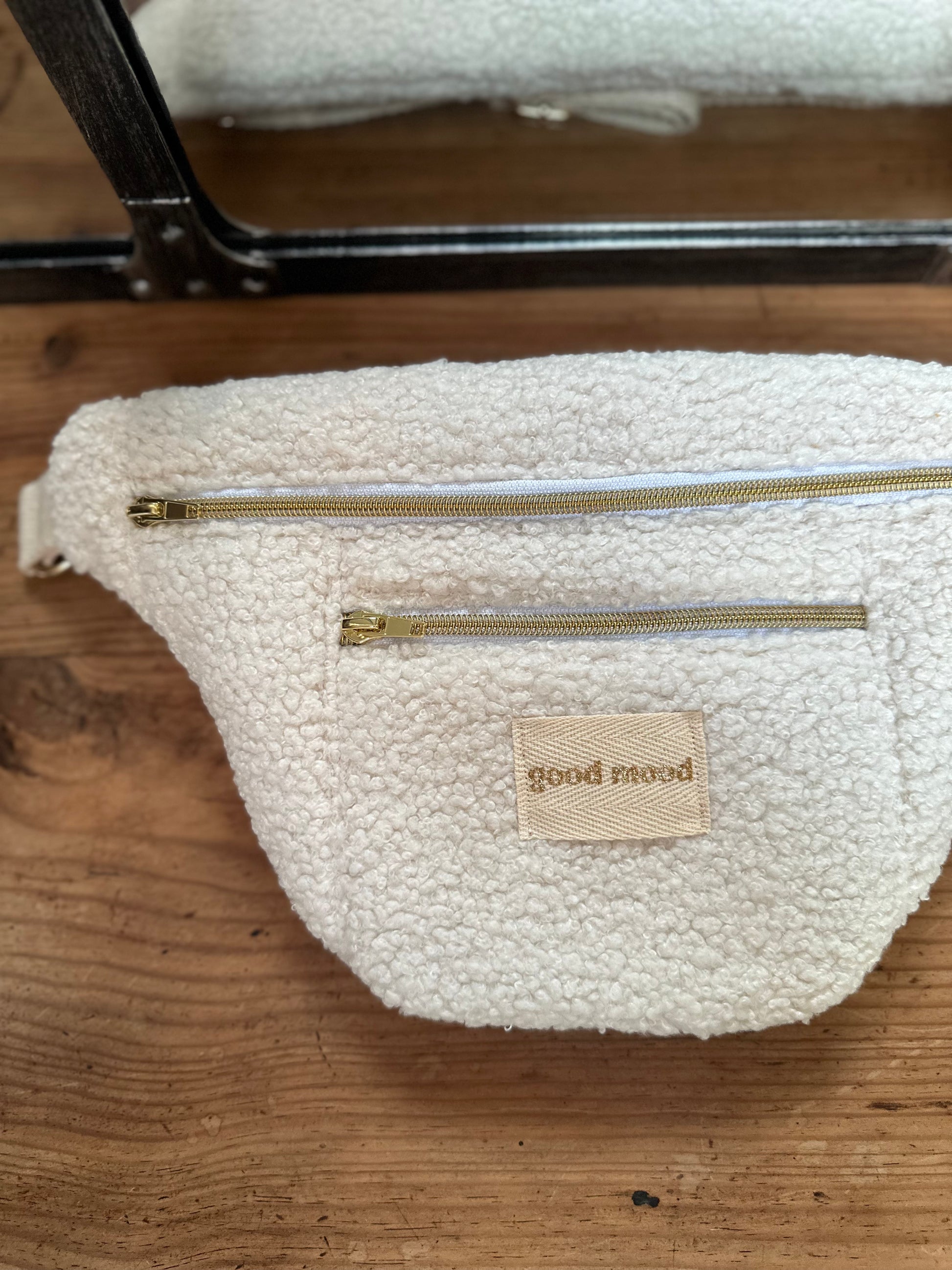 Le sac banane signé Atelier Good Mood, c’est l’alliance parfaite entre confort, style et douceur. Confectionné à la main à Macau (33) dans une matière moumoute ultra-douce, il se décline en deux teintes élégantes, écru et grège, avec la possibilité de mixer les deux pour un modèle unique et plein de caractère.